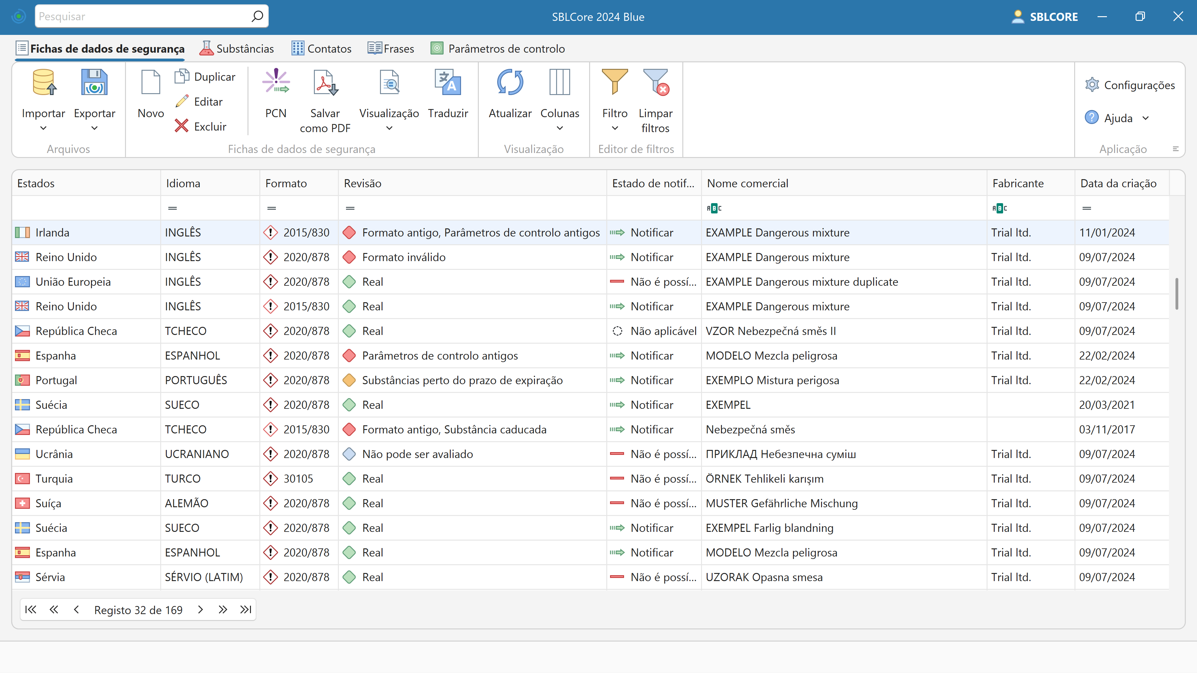 O software SBLCore oferece uma ampla variedade de recursos para facilitar todas as atividades relacionadas à criação e gestão de fichas de dados de segurança. Estamos constantemente melhorando o processo, atualizando os recursos atuais e criando novos.