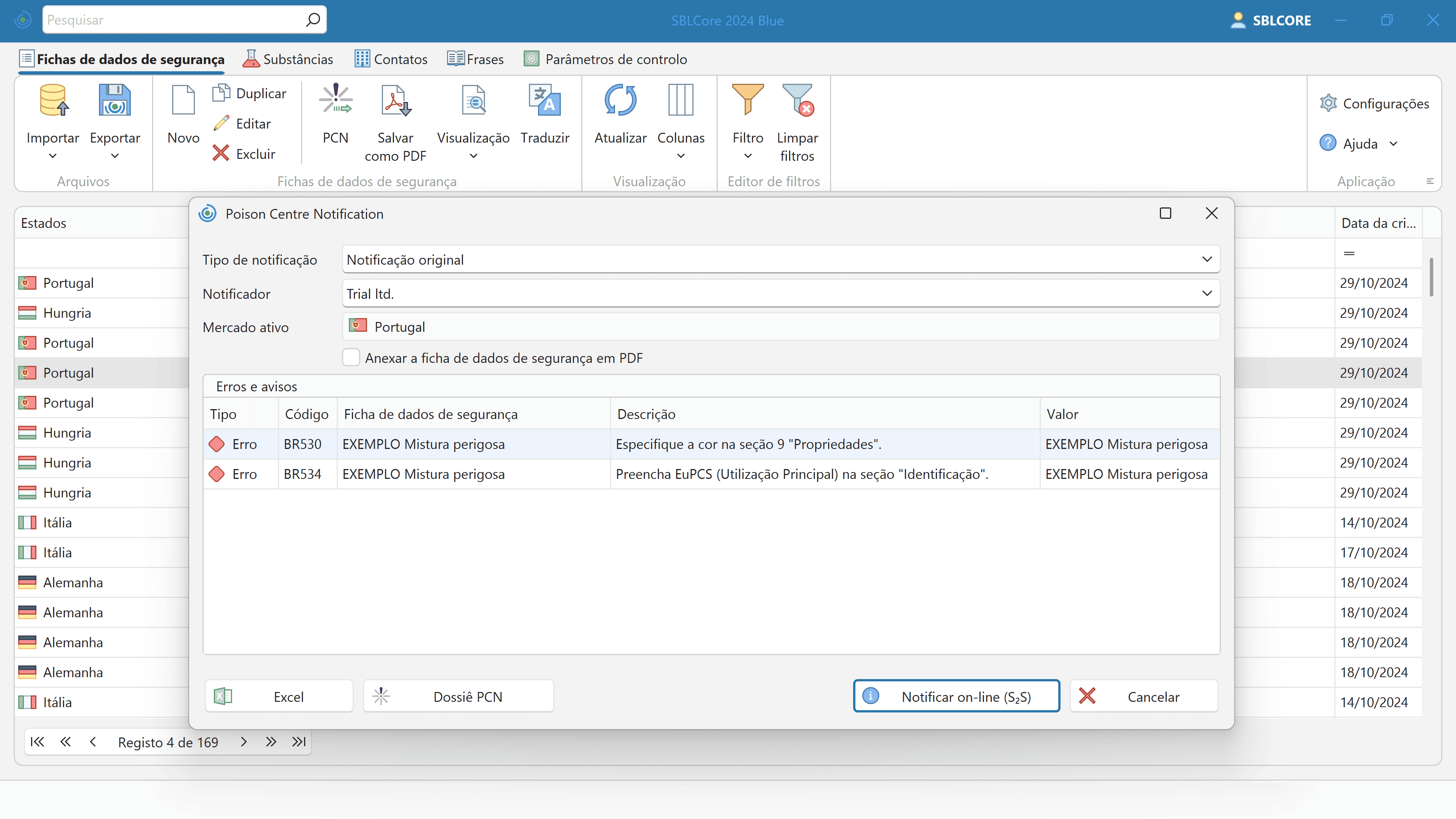 Para simplificar o seu trabalho, o software pode criar um ficheiro no formato apropriado, que pode ser simplesmente carregado no portal da ECHA. Para eliminar a longa e manual conclusão da submissão, o software avisa você de todas as informações obrigatórias necessárias.